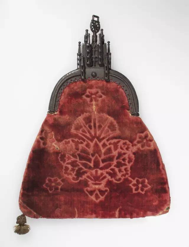 搭扣手袋的出现,相比现在的手袋搭扣简洁而隐蔽,通常会有城堡、城市或者教堂形状,有些还会带锁用以保藏贵重物品。