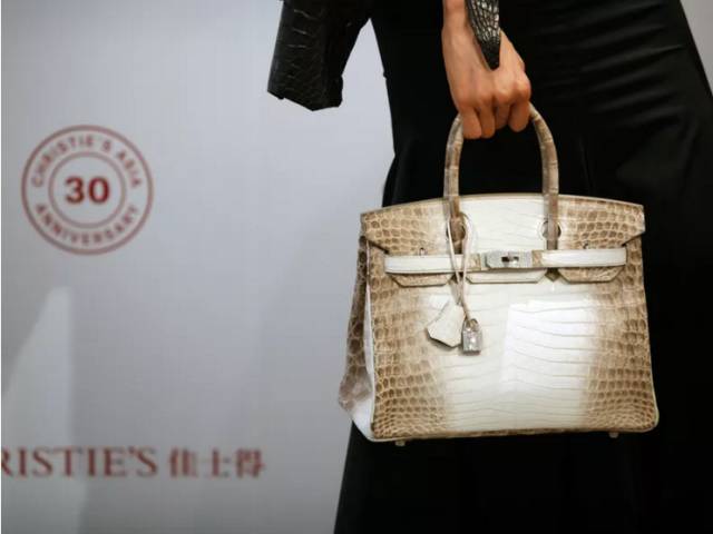 2016年5月30日,香港佳士得春拍“三十周年志庆拍卖现场, 一只爱马仕雾面白色喜玛拉雅尼罗鳄鱼皮30公分钻石柏金包以190万港元(合300,168美金)落槌,创手包拍卖最高纪录。