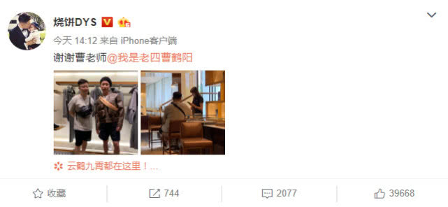 事情是这样的。7月18日下午,烧饼微博上贴出两张照片,并配文:“谢谢曹老师。”