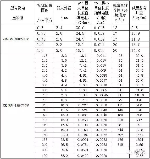 3常见BV线、BVVB型、BLVVB型、RVVB型电线载流量